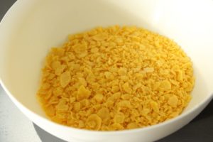 Col mixer tritatutto sbriciolate i corn flakes, facendo attenzione a non farli diventare una farina, ma lasciandoli