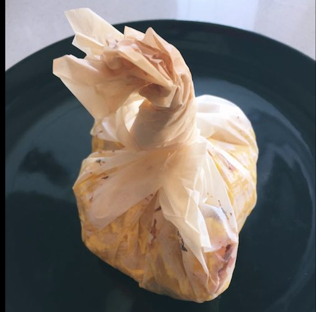 Chiudete il foglio come in foto e infornate per 5 minuti.
