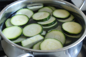 Una volta che la zucchina e la patata saranno cotte scolatele e mettetele in una ciotola o bicchiere per mixer.